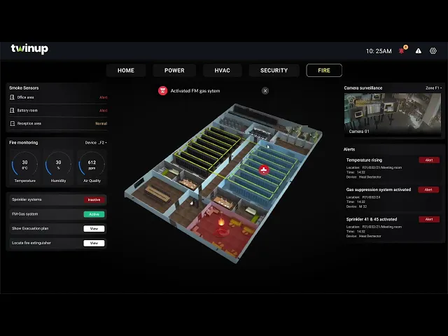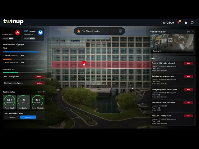 In emergency situations, we transform buildings from static structures into safe, responsive spaces. By analyzing real-time data during fires, earthquakes, or other hazardous events, we dynamically guide building occupants to the safest exit routes. Through real-time monitoring via the digital twin, we enable response teams to identify hazardous areas within the building in seconds.