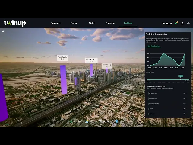 We are rebuilding Dubai's iconic center in a digital universe. Using real-time IoT data and advanced simulation techniques, we optimize all urban processes from traffic flow to energy consumption from a single hub. This digital twin application increases the city's operational efficiency while serving a vision for a sustainable future.